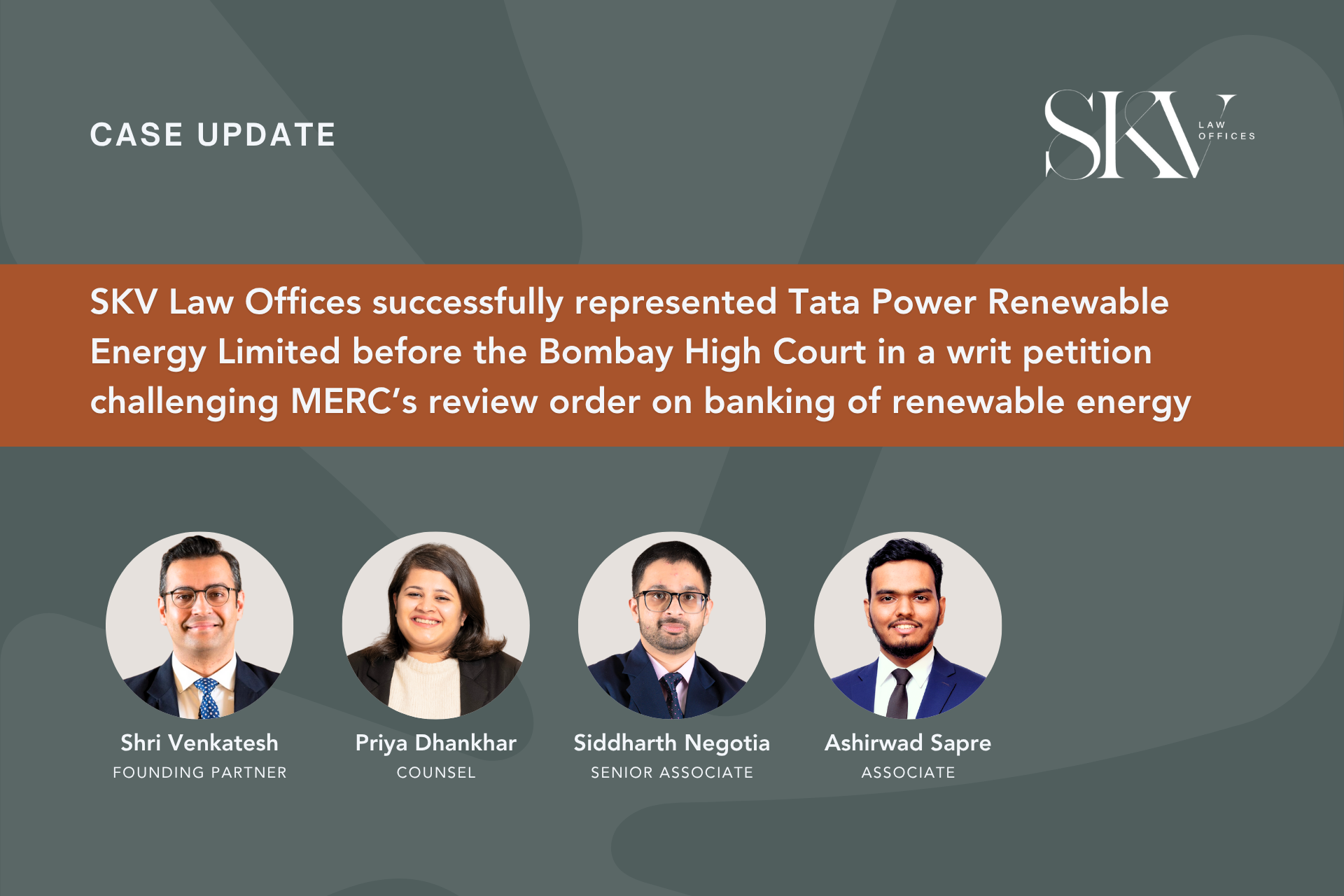 SKV Law Offices successfully represented Tata Power Renewable Energy Limited before the Bombay High Court in a writ petition challenging MERC’s review order on banking of renewable energy